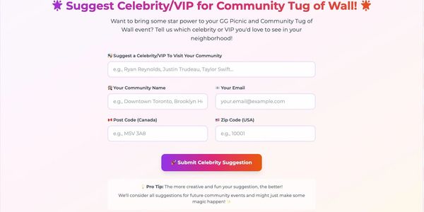 Find and promote local community celebrities to engage, share, picnic and play the TugOfWall.com
