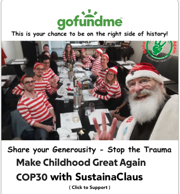 PeacePlus.ONE Join the FUN at COP29 in Baku Azerbaijan, SustainaClaus will bring the SDG EVEREST Banners to update what Civil Society is doing to heal humanity. Join us from 13:30 to 14:00 next to the entrance to Delegates Pavilions